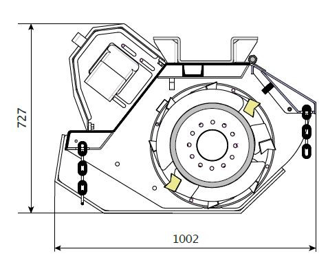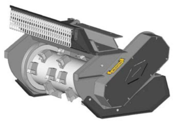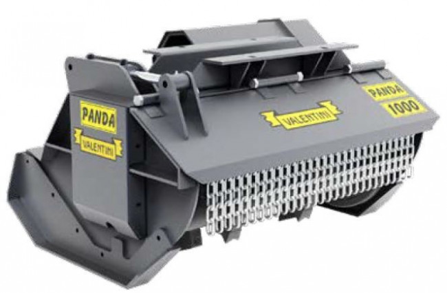 Le broyeur pour pelle VALENTINI PA-PANDA est idéal pour broyer les ronciers, les buissons , les branches, les arbustes et les rémanents jusqu’à 200 mm de diamètre. Il est muni d’un rotor à marteaux fixes deux pointes au carbure de tungstène réversibles (utilisable 2 fois). Il existe en deux largeurs de travail 1000 mm et 1300 mm. Il se monte sur des pelles midi d’un poids de 8 à 13 tonnes et d’une puissance allant jusqu’à 120 cv. Il faut un débit d’huile hydraulique de 90 / 100 litres par minute pour pouvoir l’entraîner. Le rotor tourne à une vitesse de 2200 à 2400 tours par minute. C’est le troisième modèle de la gamme des broyeurs de pelle à entraînement hydraulique VALENTINI. Il produit un broyat fin et homogène.