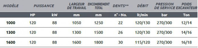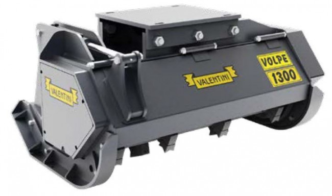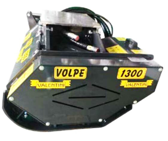 Le broyeur pour pelle VALENTINI VO-VOLPE est idéal pour broyer les ronciers, les buissons , les branches, les arbustes, les rémanents, les arbres et les souches jusqu’à 300 mm de diamètre. Il est muni d’un rotor à marteaux fixes deux pointes au carbure de tungstène réversibles (utilisable 2 fois). Il existe en trois largeurs de travail 1000 mm, 1300 mm et 1600 mm. Il se monte sur des pelles d’un poids de 10 à 15 tonnes et d’une puissance allant jusqu’à 120 cv. Il faut un débit d’huile hydraulique de 120 / 130 litres par minute pour pouvoir l’entraîner. Le rotor tourne à une vitesse de 2200 à 2400 tours par minute. C’est le quatrième modèle de la gamme des broyeurs de pelle à entraînement hydraulique VALENTINI. Il produit un broyat fin et homogène.