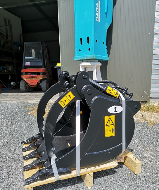 19/10/2022Godet grappin attaché Morin M2 ou godet enrochement M2 pour une pelle 5.2t.
