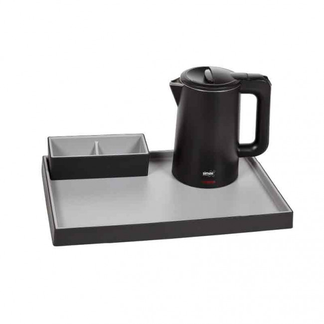 Plateau bouilloire hôtel 0.8 L - 1000 W - Polypropylène noir et acier inox