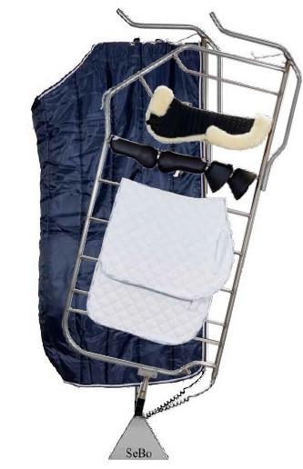 Il permet de sécher vos tapis de selle, guêtres et protège-boulets en quelques minutes.
