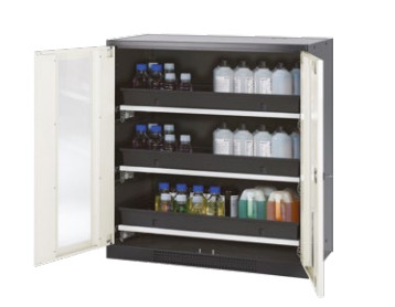 L’étagère coulissante donne un aperçu rapide de toutes les substances dangereuses stockées.