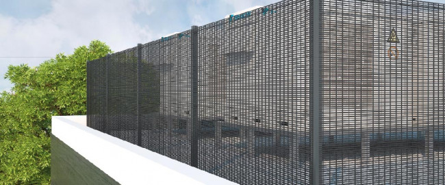 Cette brise vue en grille métallique vient décorer sa façade en assurant une protection visuelle contre le soleil et intempéries.