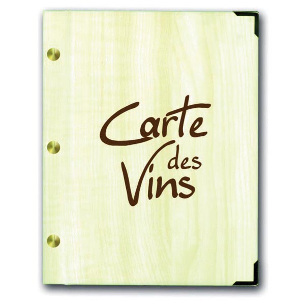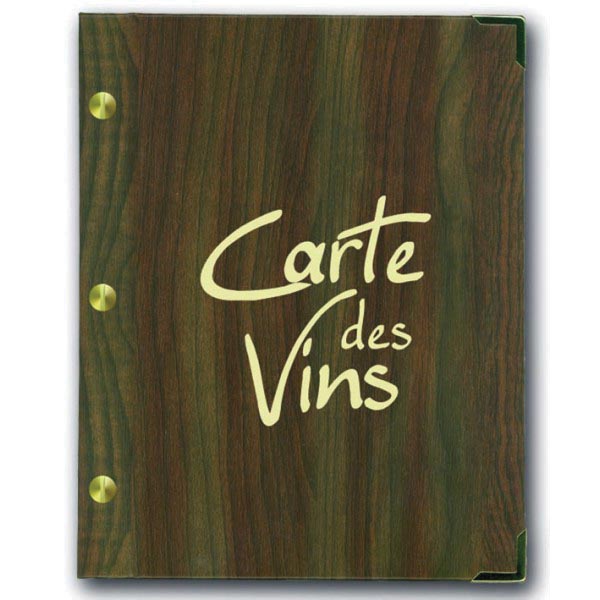 Vendu à l'unité Dimensions : 23,5 x 18 cm - 31,5 x 24 cm Marquages : "Cartes des Vins" ou " Menu" Utilisation possible d’intercalaires Imitation faux-bois