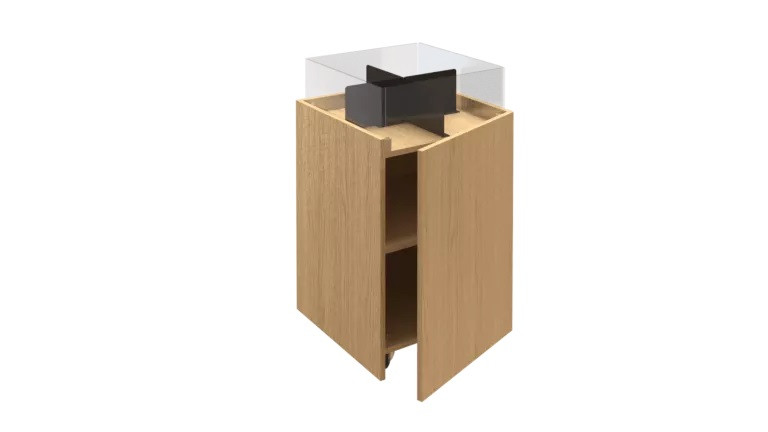 Sa finition en Egger MBH1334 (Chêne Sorano Clair) lui confère une allure naturelle et moderne, qui s’intègre parfaitement dans des environnements de vente élégants et accueillants.