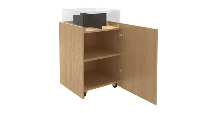 Avec une porte équipée d’une serrure, l’espace de rangement intégré sous le bac permet de garder des articles en sécurité tout en les ayant à portée de main.