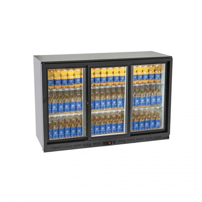 armoire réfrigérée comprend 3 portes vitrées coulissantes.