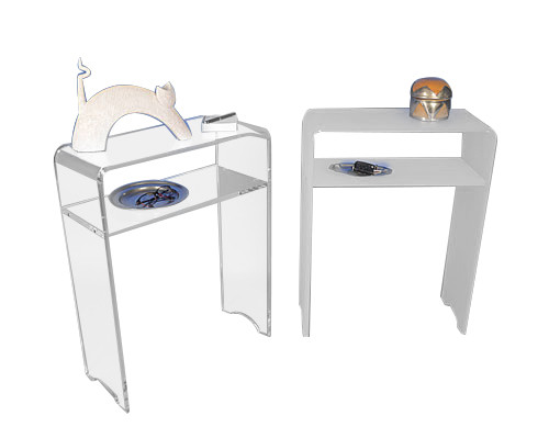 Demandes de devis pour Consoles vide poche en Plexiglas Cristal ou Satiné Dépoli - L.58 cm x P.25 cm x H.74 cm