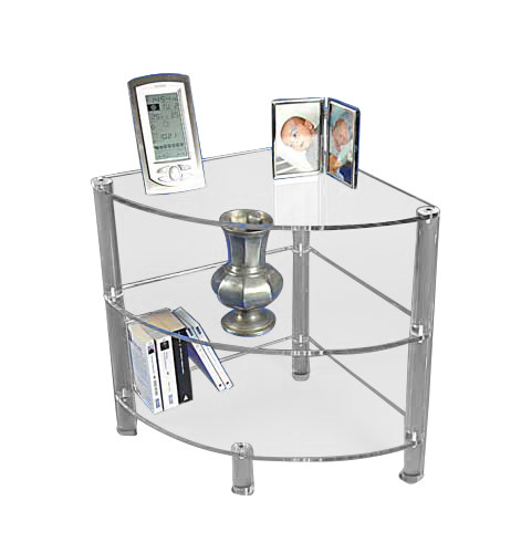 Notre table d'appoint d'angle en plexiglas transforme vos espaces inutilisés en véritables atouts déco.