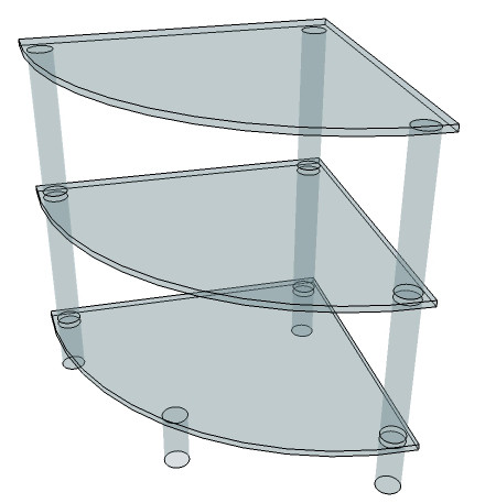 Notre meuble d'angle design présente des proportions idéales pour optimiser vos espaces. Avec ses 61 cm de hauteur et ses trois plateaux en quart de cercle de 50 cm de rayon, cette table d'appoint transparente offre une surface de rangement généreuse sans jamais paraître imposante.
