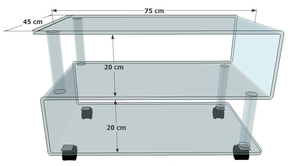 L’espace entre les étages est de 20 cm, permettant de ranger des appareils, livres, ou objets décoratifs.