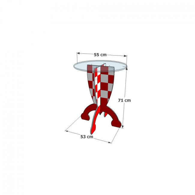 Son plateau, d'un diamètre de 55 cm, repose sur une base de 71 cm de hauteur, offrant une stabilité optimale.