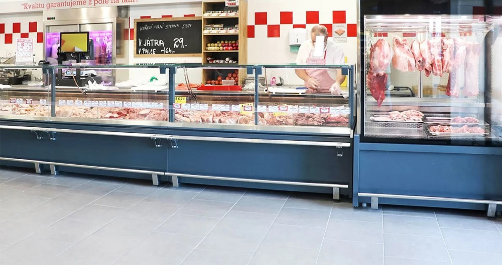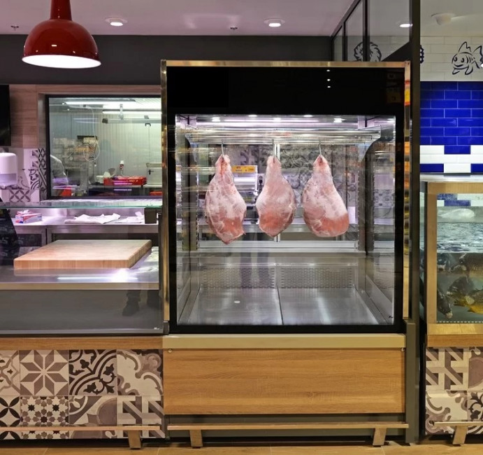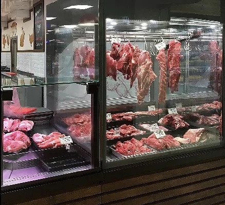 Fermeture côté service avec 2 portes battantes double vitrage (coulissantes en option)