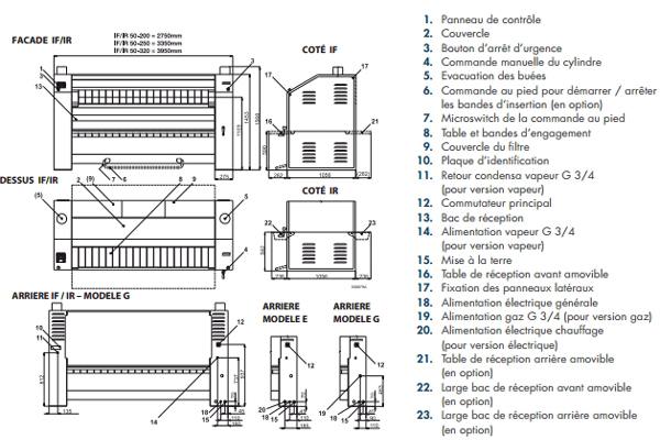 Devis et infos sur 1 sécheuse repasseuse de 1m20. Merci d"inclure tous les modèles.