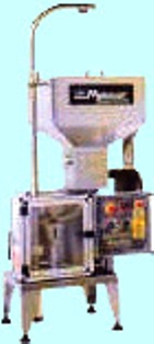 Principes de fonctionnement : - les bouchons sont malaxés dans la trémie - les bouchons sont présentés à l'orienteur par un pousseur - l'orientation est réalisée par simple gravité - un retourneur pneumatique pousse les bouchons correctement orientés dans la tuyauterie d'alimentation de la boucheuse - une régulation par cellule sur la tuyauterie d'alimentation asservie le distributeur orienteur de bouchons à la demande de la boucheuse. En option : - la trémie peut-être équipée d'un réchauffeur de bouchons par air chaud (réglage en température) - la tuyauterie d'alimentation de la boucheuse peut-être équipée d'un humidificateur de bouchons (la vanne d'arrivée d'eau est asservie à la mise en route du distributeur orienteur de bouchons). Cadence minimum : 600 bouchons / heure Cadence maxi : 2500 bouchons / heure Trémie : 1000 bouchons Fabrication : tout acier inoxydable Entretien : facile Fiabilité : grande
