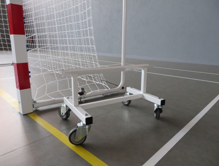 Ce chariot sur roulettes vous permettra de transporter facilement vos buts de Handball.