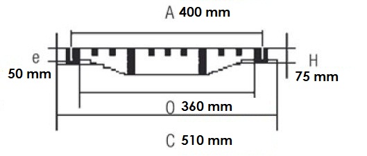 Réf. TC : 440976211Grille de caniveau concave avec cadre D 400 D 400 En fonte 600 x 600 75 82 Standard