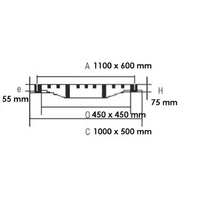 | Réf. TC :598231212 | Grille plate pour caniveau C250 | C 250 | En fonte ductile | 1100 x 600 mm | 75 | 105 | -