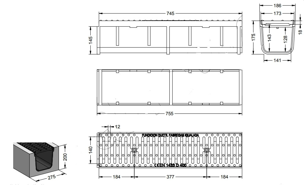 caniveau avec grille fonte équipée d"antivol - largeur utile entre 220 et 250 mm et profondeur utile +- 200 mm. véhicule de passage sur le caniveau +- 15 t. Linéaire à traiter 15,50 mètres. Merci d"avance pour le retour. Bien à vous. P. BASTONERO