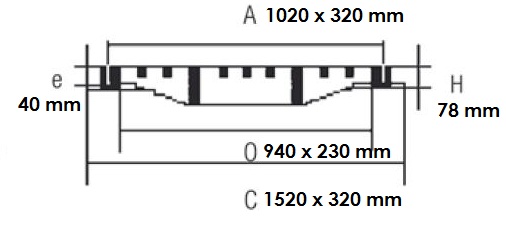 - C : Dimension du tampon : 1520 x 320 mm