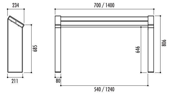 Demandes de devis pour Assis debout urbain en bois - Longueur 700 ou 1400 mm - A fixer au sol