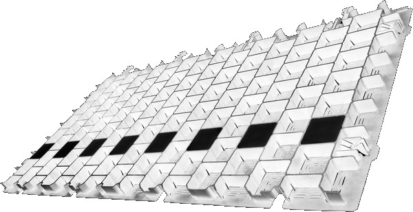 La dalle est destinée aux voiries et parkings a usage fréquent, elle a une résistance supérieure à 400 Tonnes/m² pleine. Elle peut être remplie de 3 cm de graviers laissant apparent la trame de la dalle servant de décor ou être entièrement recouverte, dans ce cas 1 cm de surcharge est suffisant.
