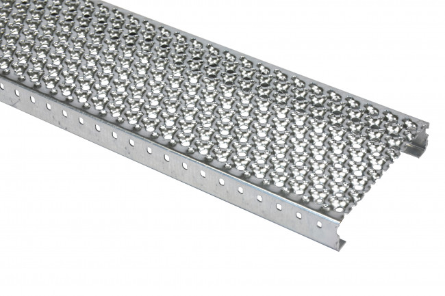 La grille de sécurité PS-OFF possède les mêmes avantages que la grille de sécurité PS-PERF mais diffère de par le dessin de ses perforations. Elle offre une excellente adhérence par ses grandes perforations embouties vers le haut et permet l’écoulement de liquide par des petites perforations.