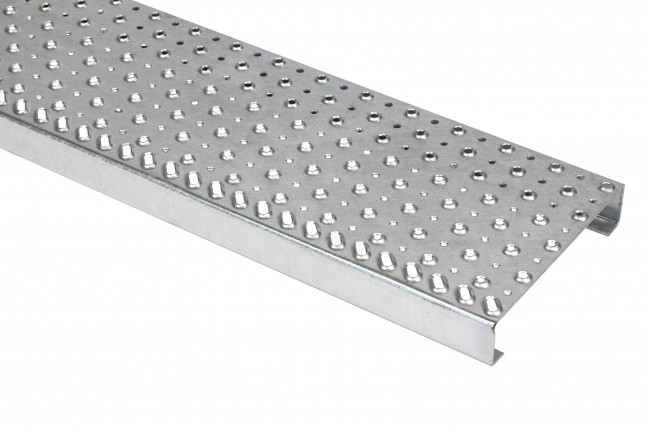 La grille de sécurité PS-PERF dispose de grandes perforations embouties vers le bas et permet l’écoulement de liquide par des petites perforations.