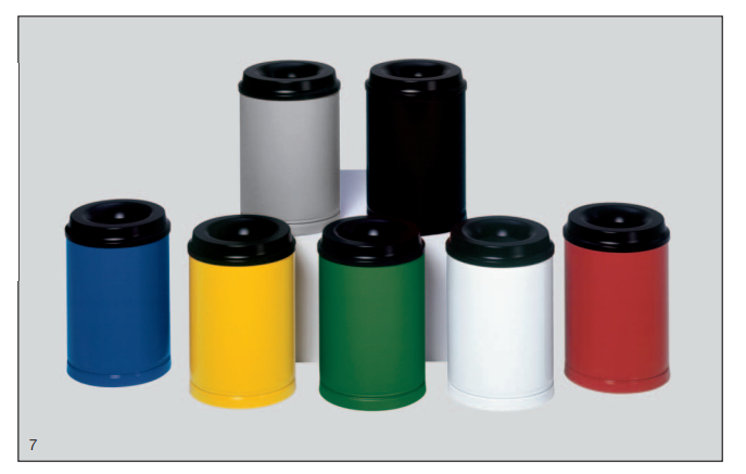 Cette poubelle à papier est disponible en 8 différents coloris au choix. La partie tête est toujours revêtue noir.