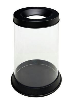 Avec une finition noir-transparente et des lignes épurées, cette corbeille s'intègre harmonieusement dans tout type d'environnement, ajoutant une touche de modernité tout en répondant aux normes de sécurité.
