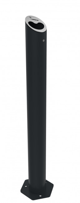 Sa forme cylindrique et sa finition anthracite mat RAL 7016 ou gris alu RAL 9006 lui permettent de s’intégrer discrètement à tout environnement : façade d’entreprise, parvis d’immeuble, aire fumeur ou zone de stationnement.