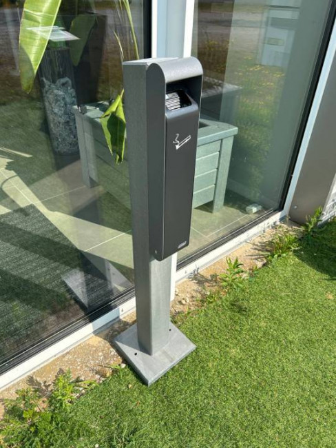 • Cendrier sur pied à fixer, livré monté, installation rapide