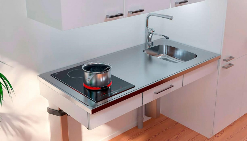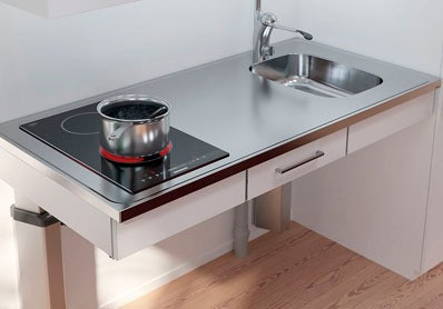 L'espace sous l'évier ou la plaque de cuisson vous permet de passer vos jambes, si vous êtes en fauteuil roulant.