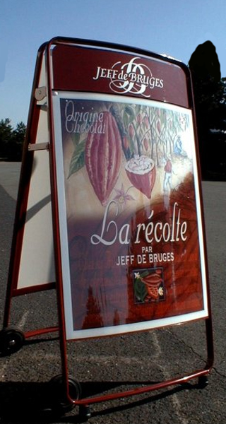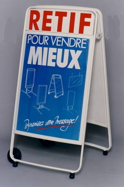 Ce panneau d'affichage dépliable en chevalet est idéal pour les centres-villes où vous devez chaque soir rentrer votre panneau.