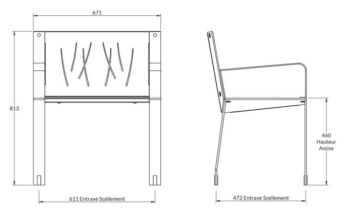 Sa longueur de 67,1 cm et sa hauteur d'assise de 46 cm, assurent une assise confortable, respectant les normes des espaces collectifs.