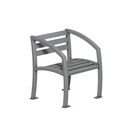 Ce fauteuil urbain en acier convient pour un usage externe dans les espaces publics, les jardins et les parcs.
