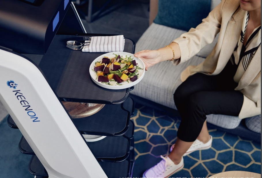 Le robot runner va suivre ces derniers pour amener les plats et les boissons ou rapporter les assiettes vides en cuisine.