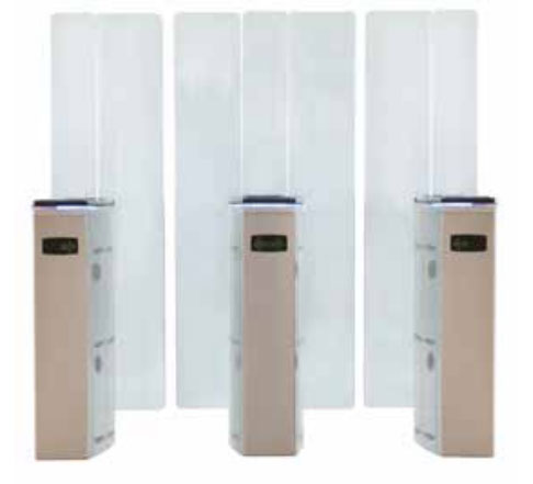 - Les portes vitrées sont des obstacles en verre clair trempé de sécurité de 12 mm d'épaisseur. Elles se rétractent dans la carrosserie en tôle inox à chaque mouvement d'ouverture. La capacité du couloir de contrôle est de 25 à 50 passages par minute.