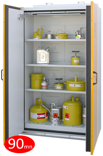 Spécialement conçue pour les produits inflammables, elle est munie de 2 portes indépendantes avec maintien en ouverture et fermeture automatique en cas d'incendie.