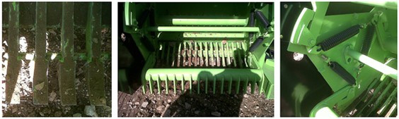 Sa grille de foyer en acier robuste équipée de dents de largeur 3,8 cm suppriment les encombrements pendant l’élimination de la terre pour un ramassage et un nettoyage optimum des pierres. Les peignes bénéficient d’épaisses parois de 1 cm.