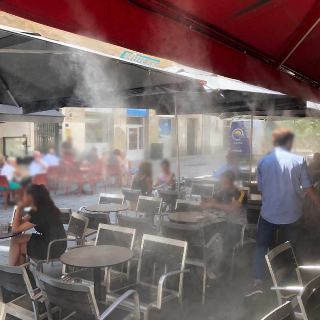Nos systèmes de brumisation vous offrent l’opportunité de créer une atmosphère rafraîchit dans des lieux de détente (terrasse de café), de loisir et également de travail dans lequel vos clients auront envie d’y rester plus longtemps.