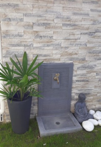 Un simple ajout de colle à carrelage flex extérieur suffit pour fixer cette fontaine avec efficacité et durabilité.