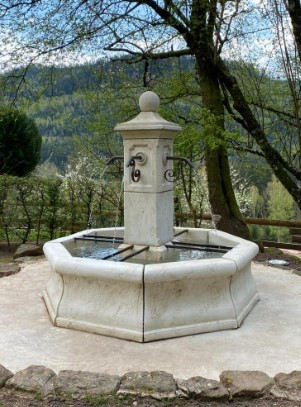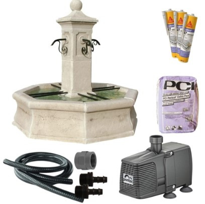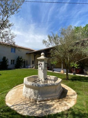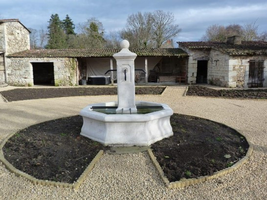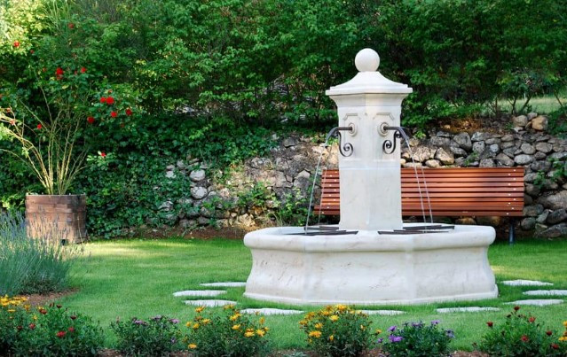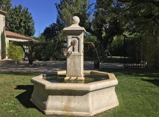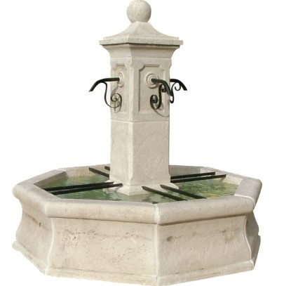La fontaine centrale octogonale en pierre reconstituée offre une touche majestueuse à tout espace extérieur.