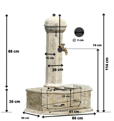 - La fontaine est conçue pour être facilement installée avec du ciment colle pour carrelage extérieur.|