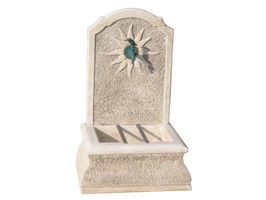 Dotée d'un fronton orné d'un motif solaire, cette fontaine arbore un style distinctif qui apportera une ambiance chaleureuse à votre jardin.