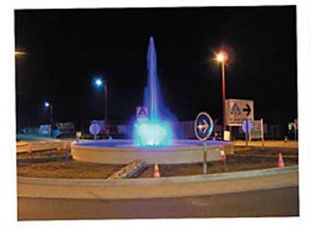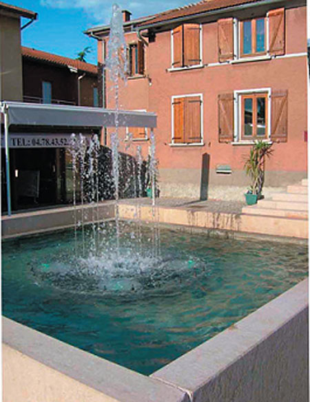 La nuit tombée, notre fontaine urbaine est mise en valeur grâce à l’éclairage des jets d’eau selon des scénarios lumineux originaux.