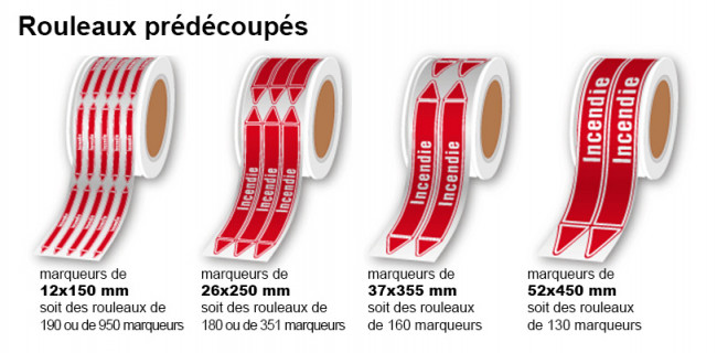 Plusieurs tailles de marqueurs de tuyauterie en continu vous sont proposées :