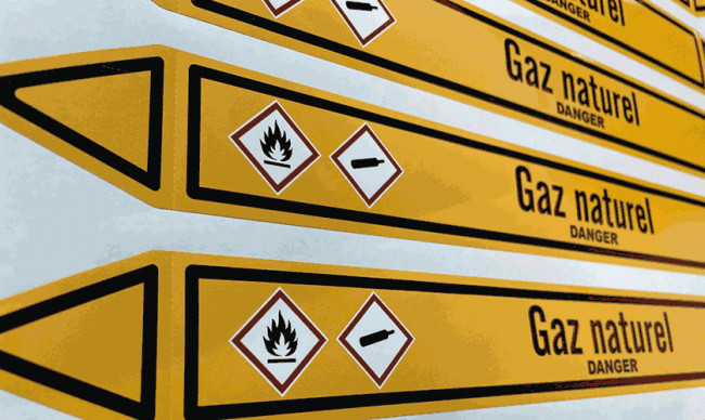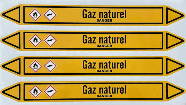 Nos marqueurs de tuyauterie sont conformes aux législations françaises et européennes qui imposent à l'employeur l'identification des conduits à chaque point de connexion : entrée et sortie de vanne, d'appareils, passage de cloison... et connaître précisément le fluide transporté et son sens de circulation. En fonction de la dangerosité des produits, des pictogrammes SGH doivent renforcer leur identification.