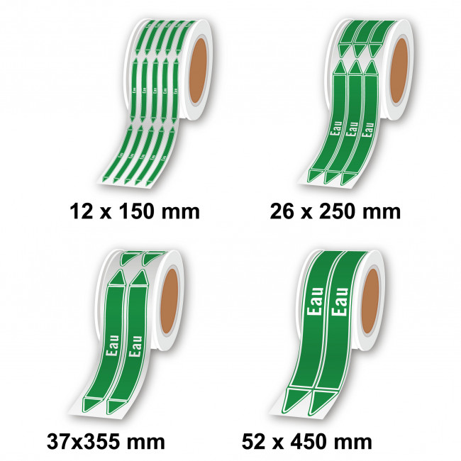 Plusieurs tailles de marqueurs de tuyauterie en continu vous sont proposées :