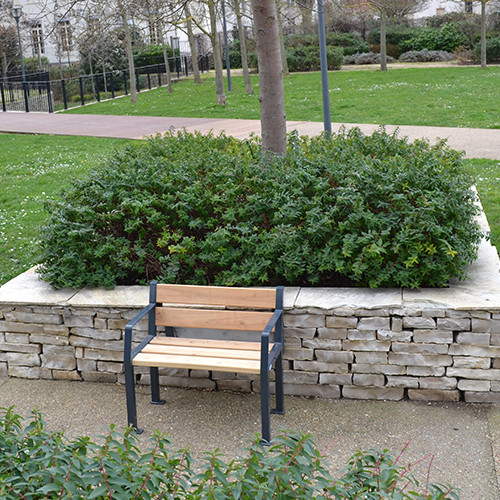- Assise et dossier composés de 5 lattes 600 x 110 x 35 mm en bois Robinier naturel.